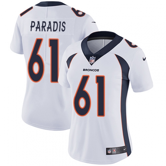 Home>NFL>Denver Broncos>Matt Paradis>Women's Nike Denver Broncos #61 Matt Paradis White Vapor Untouchable Limited Player NFL Jersey
