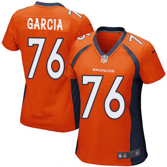 Home>NFL>Denver Broncos>Max Garcia>Women's Nike Denver Broncos #76 Max Garcia Game Orange Team Color NFL Jersey
