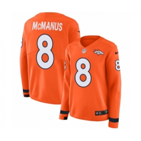 >Women's Nike Denver Broncos #8 Brandon McManus Limited Orange Therma Long Sleeve NFL Jersey
