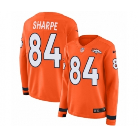 >Women's Nike Denver Broncos #84 Shannon Sharpe Limited Orange Therma Long Sleeve NFL Jersey