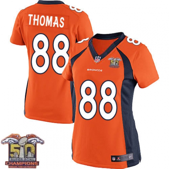 Home>NFL>Denver Broncos>Demaryius Thomas>Women's Nike Denver Broncos #88 Demaryius Thomas Elite Orange Team Color Super Bowl 50 Champions NFL Jersey