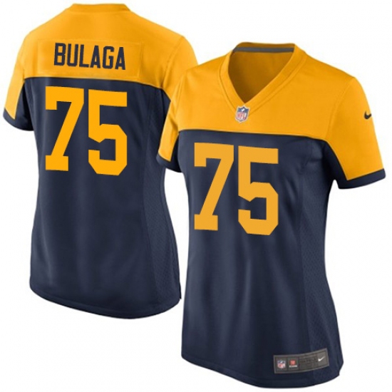 Women's Nike Green Bay Packers #75 Bryan Bulaga Elite Navy Blue Alternate NFL Jersey