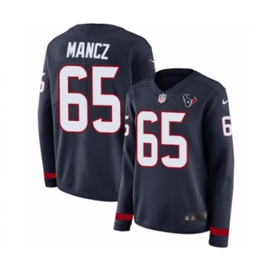 >Women's Nike Houston Texans #65 Greg Mancz Limited Navy Blue Therma Long Sleeve NFL Jersey