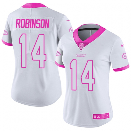 Home>NFL>Kansas City Chiefs>Demarcus Robinson>Women's Nike Kansas City Chiefs #14 Demarcus Robinson Limited White/Pink Rush Fashion NFL Jersey