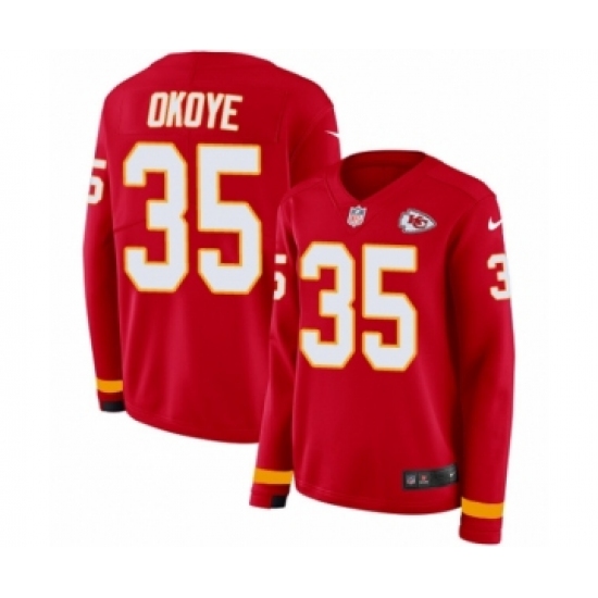 Women's Nike Kansas City Chiefs #35 Christian Okoye Limited Red Therma Long Sleeve NFL Jersey