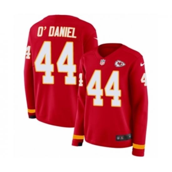 >Women's Nike Kansas City Chiefs #44 Dorian O'Daniel Limited Red Therma Long Sleeve NFL Jersey