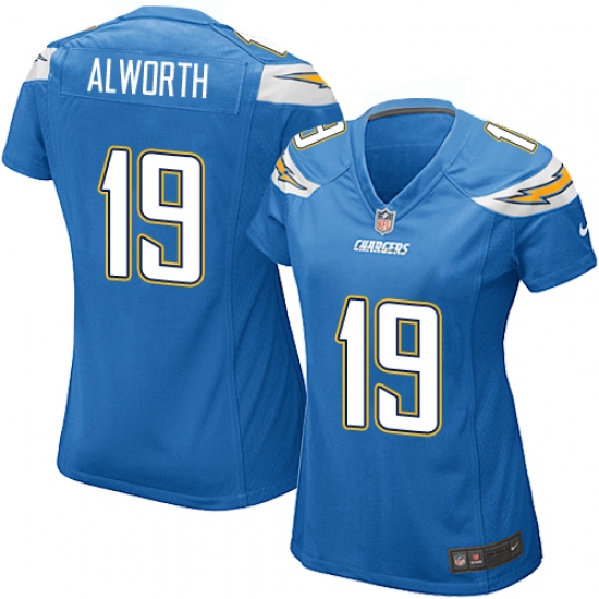 Home>NFL>Los Angeles Chargers>Lance Alworth>Women's Nike Los Angeles Chargers #19 Lance Alworth Game Electric Blue Alternate NFL Jersey