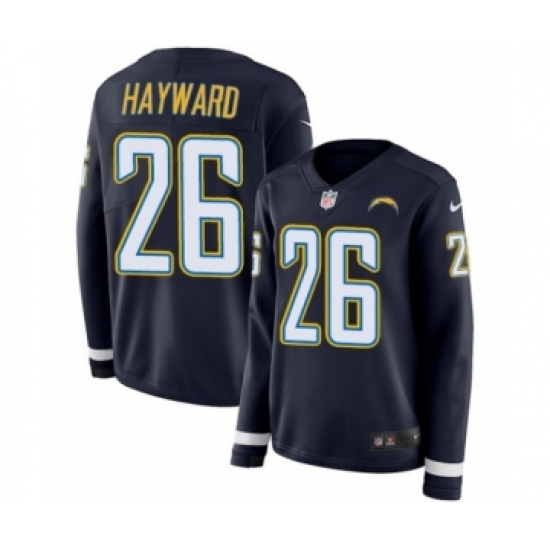 >Women's Nike Los Angeles Chargers #26 Casey Hayward Limited Navy Blue Therma Long Sleeve NFL Jersey