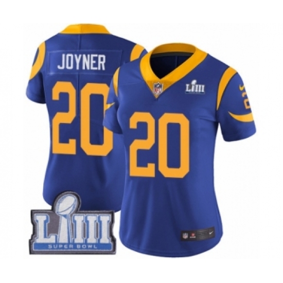 >Women's Nike Los Angeles Rams #20 Lamarcus Joyner Royal Blue Alternate Vapor Untouchable Limited Player Super Bowl LIII Bound NFL Jersey