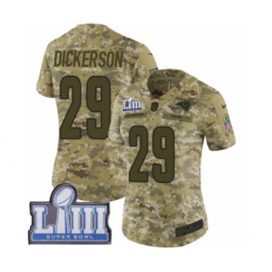 >Women's Nike Los Angeles Rams #29 Eric Dickerson Limited Camo 2018 Salute to Service Super Bowl LIII Bound NFL Jersey