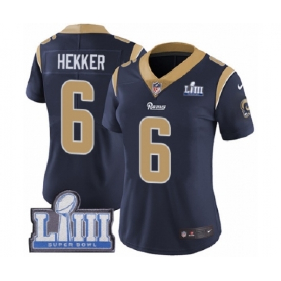 Women's Nike Los Angeles Rams #6 Johnny Hekker White Vapor Untouchable Limited Player Super Bowl LIII Bound NFL Jersey
