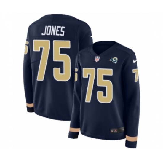 Women's Nike Los Angeles Rams #75 Deacon Jones Limited Navy Blue Therma Long Sleeve NFL Jersey