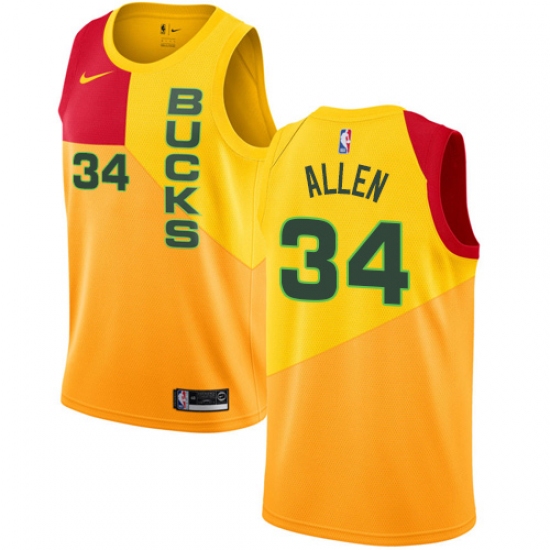 >Women's Nike Milwaukee Bucks #34 Ray Allen Swingman Yellow NBA Jersey - City Edition