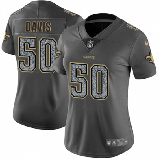 >Women's Nike New Orleans Saints #50 DeMario Davis Gray Static Vapor Untouchable Limited NFL Jersey