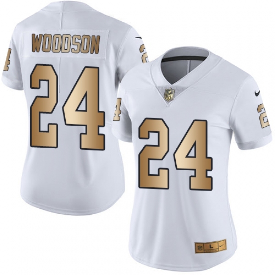 Home>NFL>Las Vegas Raiders>Charles Woodson>Women's Nike Oakland Raiders #24 Charles Woodson Limited White/Gold Rush NFL Jersey