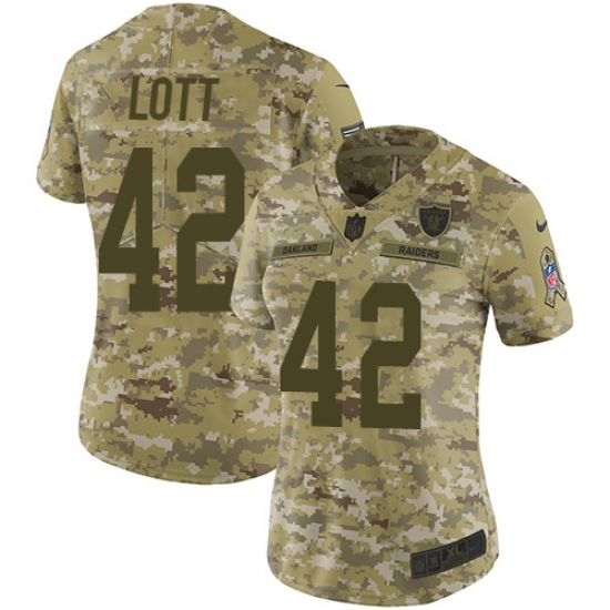 >Women's Nike Oakland Raiders #42 Ronnie Lott Limited Camo 2018 Salute to Service NFL Jersey