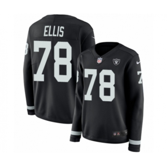 >Women's Nike Oakland Raiders #78 Justin Ellis Limited Black Therma Long Sleeve NFL Jersey