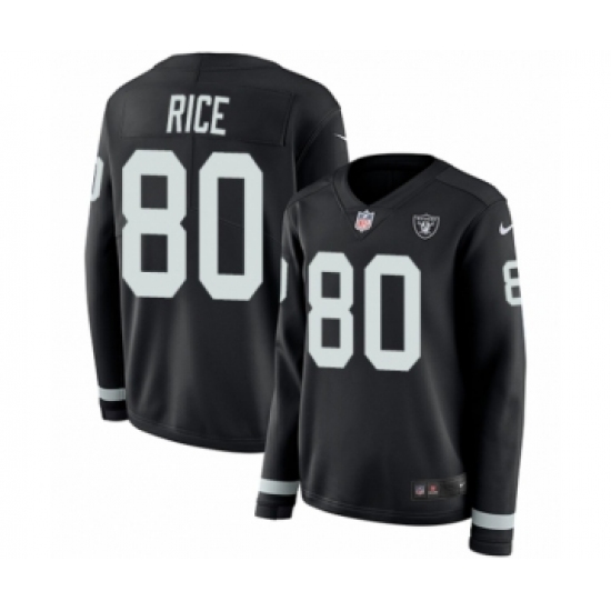 >Women's Nike Oakland Raiders #80 Jerry Rice Limited Black Therma Long Sleeve NFL Jersey