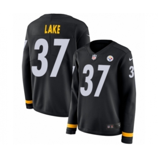 Women's Nike Pittsburgh Steelers #37 Carnell Lake Limited Black Therma Long Sleeve NFL Jersey