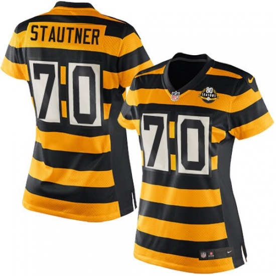 Home>NFL>Pittsburgh Steelers>Ernie Stautner>Women's Nike Pittsburgh Steelers #70 Ernie Stautner Game Yellow/Black Alternate 80TH Anniversary Throwback NFL Jersey