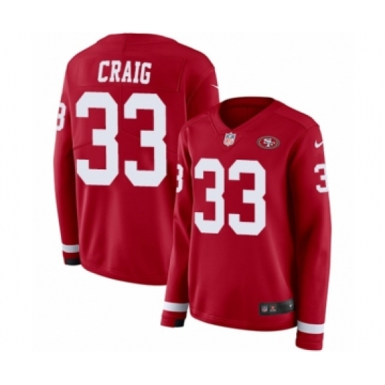 >Women's Nike San Francisco 49ers #33 Roger Craig Limited Red Therma Long Sleeve NFL Jersey