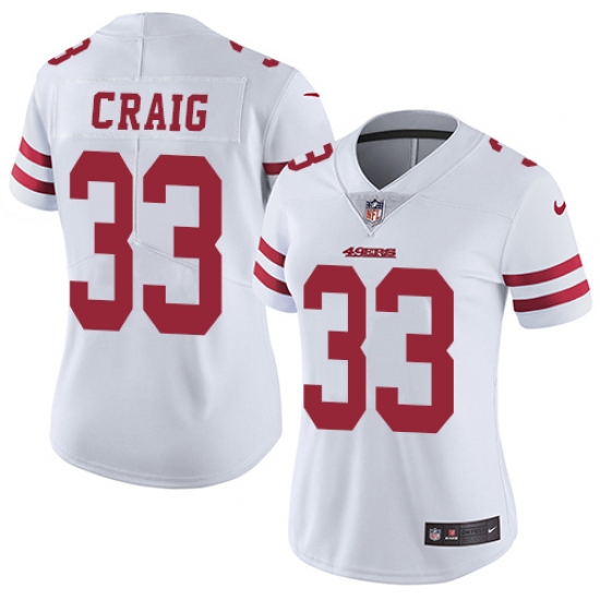 Women's Nike San Francisco 49ers #33 Roger Craig White Vapor Untouchable Limited Player NFL Jersey