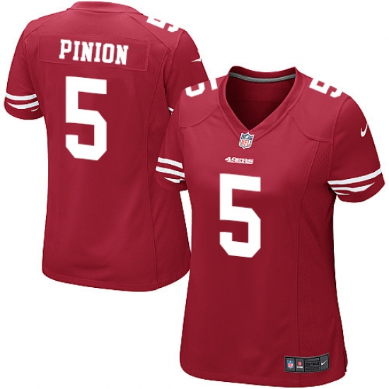 Home>NFL>San Francisco 49ers>Bradley Pinion>Women's Nike San Francisco 49ers #5 Bradley Pinion Game Red Team Color NFL Jersey