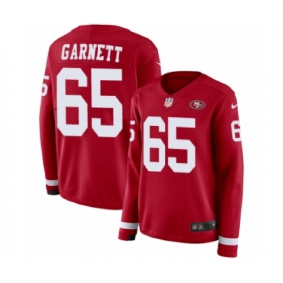 Women's Nike San Francisco 49ers #65 Joshua Garnett Limited Red Therma Long Sleeve NFL Jersey