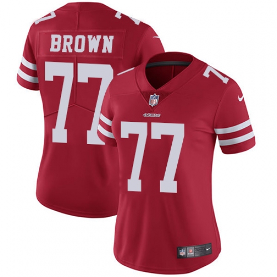 Women's Nike San Francisco 49ers #77 Trent Brown Elite Red Team Color NFL Jersey