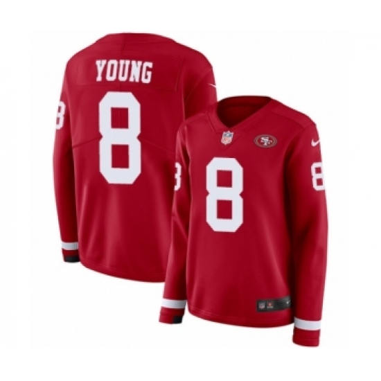 >Women's Nike San Francisco 49ers #8 Steve Young Limited Red Therma Long Sleeve NFL Jersey