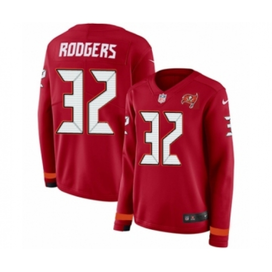 >Women's Nike Tampa Bay Buccaneers #32 Jacquizz Rodgers Limited Red Therma Long Sleeve NFL Jersey