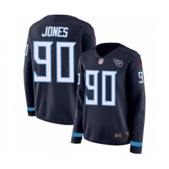 Women's Nike Tennessee Titans #90 DaQuan Jones Limited Navy Blue Therma Long Sleeve NFL Jersey