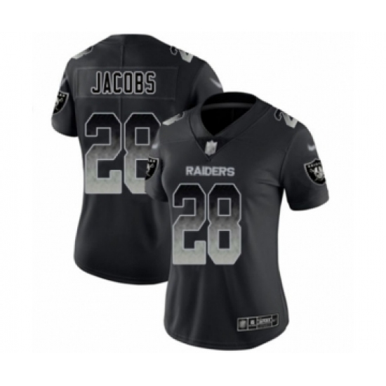 >Women's Oakland Raiders #28 Josh Jacobs Black Smoke Fashion Limited Football Jersey