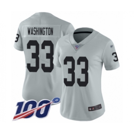 >Women's Oakland Raiders #33 DeAndre Washington Limited Silver Inverted Legend 100th Season Football Jersey