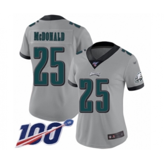 >Women's Philadelphia Eagles #25 Tommy McDonald Limited Silver Inverted Legend 100th Season Football Jersey