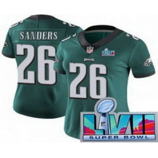 >Women's Philadelphia Eagles #26 Miles Sanders Limited Green Super Bowl LVII Vapor Jersey