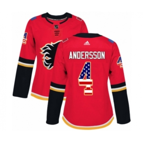 >Women's Reebok Calgary Flames #4 Rasmus Andersson Authentic Red USA Flag Fashion NHL Jerseyy