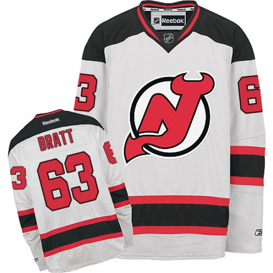 Home>NHL>New Devils Jersey>Jesper Bratt>Women's Reebok New Jersey Devils #63 Jesper Bratt Authentic White Away NHL Jersey