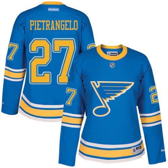 Home>NHL>St. Louis Blues>Alex Pietrangelo>Women's Reebok St. Louis Blues #27 Alex Pietrangelo Premier Blue 2017 Winter Classic NHL Jersey