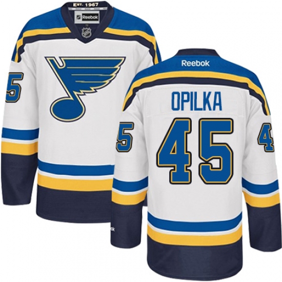 Home>NHL>St. Louis Blues>Luke Opilka>Women's Reebok St. Louis Blues #45 Luke Opilka Authentic White Away NHL Jersey