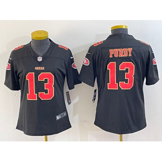 >Women's San Francisco 49ers #13 Brock Purdy Black Red Fashion Vapor Limited Stitched Jersey