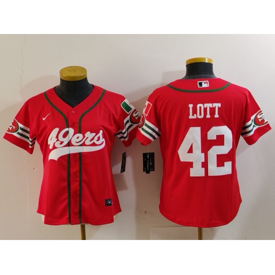 Women's San Francisco 49ers #42 Ronnie Lott Red Mexico Cool Base Stitched Baseball Jerseys
