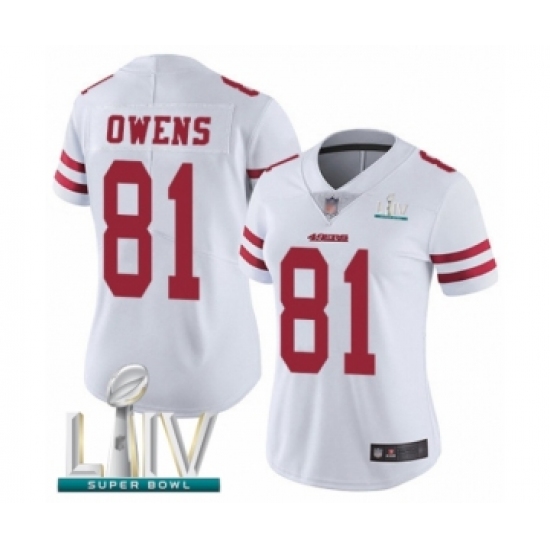 >Women's San Francisco 49ers #81 Terrell Owens White Vapor Untouchable Limited Player Super Bowl LIV Bound Football Jersey
