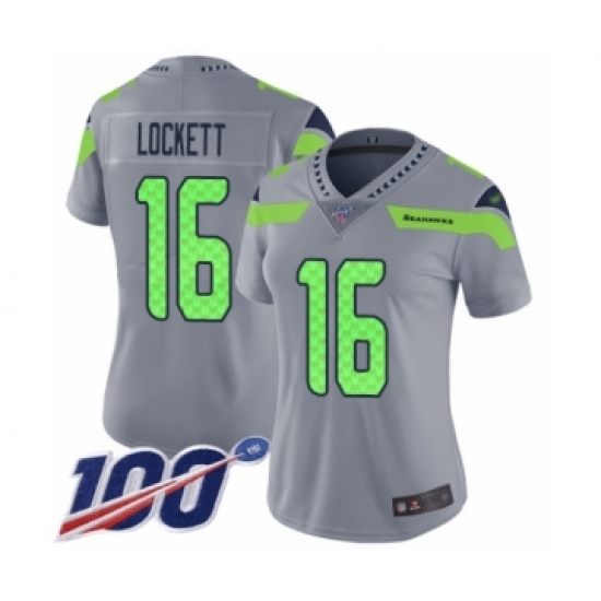 Women's Seattle Seahawks #16 Tyler Lockett Limited Silver Inverted Legend 100th Season Football Jersey