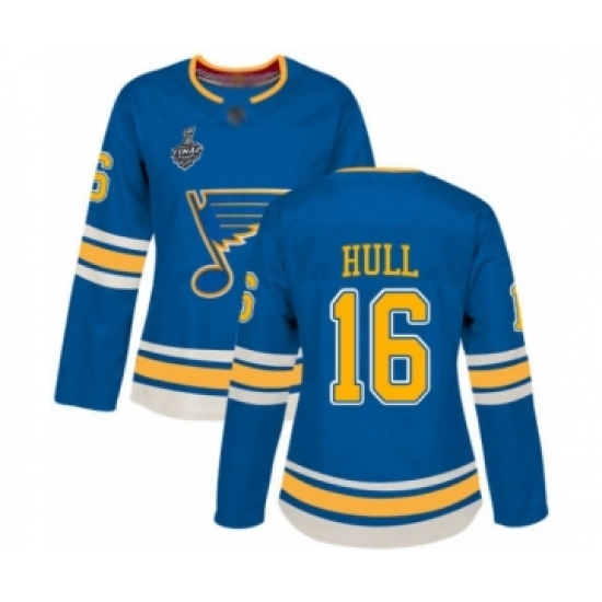 Women's St. Louis Blues #16 Brett Hull Authentic Navy Blue Alternate 2019 Stanley Cup Final Bound Hockey Jersey