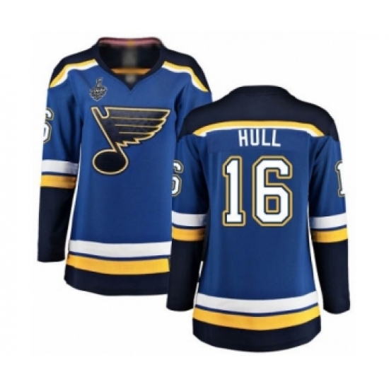 >Women's St. Louis Blues #16 Brett Hull Fanatics Branded Royal Blue Home Breakaway 2019 Stanley Cup Final Bound Hockey Jersey