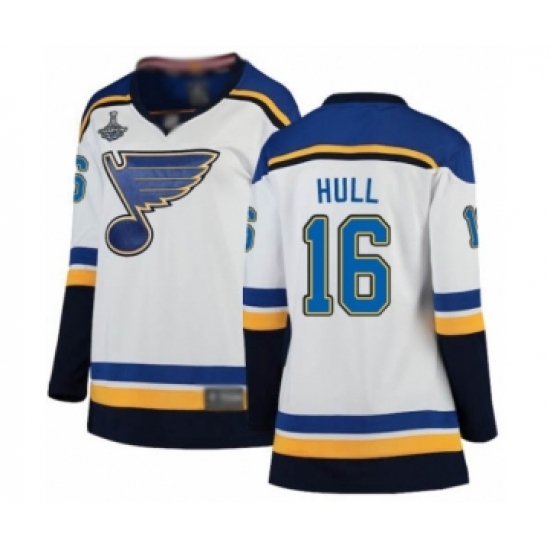 Women's St. Louis Blues #16 Brett Hull Fanatics Branded White Away Breakaway 2019 Stanley Cup Champions Hockey Jersey