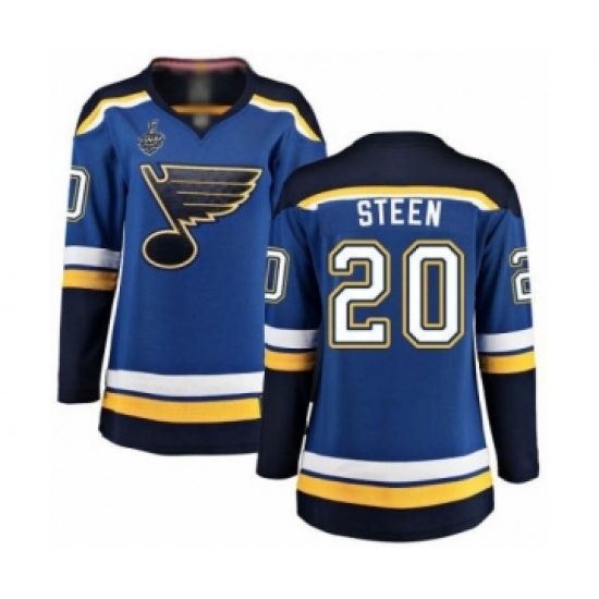 Women's St. Louis Blues #20 Alexander Steen Authentic Royal Blue Home 2019 Stanley Cup Final Bound Hockey Jersey