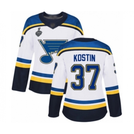Women's St. Louis Blues #37 Klim Kostin Authentic White Away 2019 Stanley Cup Final Bound Hockey Jersey