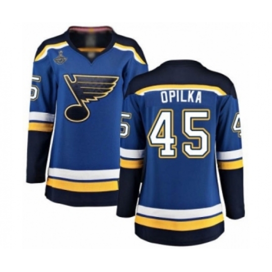 Women's St. Louis Blues #45 Luke Opilka Fanatics Branded Royal Blue Home Breakaway 2019 Stanley Cup Champions Hockey Jersey